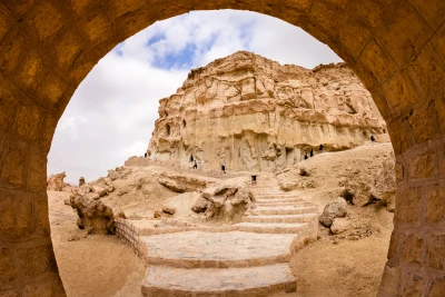 At the foot of the mountain, a low cliff is located 10 km southwest of the city of Qeshm. Kharbas Cave is a natural cave in which small corridors were created due to the penetration of water. These corridors were subsequently expanded and developed at historic times. This cave consists of two floors, the first floor is the natural part of the cave and the second floor is the man-made section, which includes a rectangular central room and small contiguous rooms. Furthermore, the presence of cradle-shaped and crescent-shaped niches and rooms indicates a kind of advanced rock architecture. Kharbas cave, due to the rock architecture and the existence of numerous historical monuments and sites, is most likely related to the historical period (Parthian and most likely Sassanid). This geosite consists of several corridors excavated in the marl floors of the Aghajari Formation. Kharbas cave is a place that possesses historical value in addition to natural attractions. It seems that some of these corridors and passages are man-made and go back to the times when no one remembers. The beautification and construction of stone stairs have made this geosite even more beautiful due to the variety of rocks and visual values and created a suitable place for photographing and recording memories. Other interesting points of this geosite are its biodiversity and the existence of a group of bats that live in this cave. They apparently got along well with the movement of tourists and have not decided to leave. If you do not get too close to them, it is possible to photograph them. If you follow the corridors to the end, you will find undamaged pieces of seashells that are engraved on the walls. On some rocky areas, there are small conduits like a little finger. These are the forms and effects related to the life of marine mollusks that have provided a home for survival and nutrition when they form these deposits by digging in the sediments.