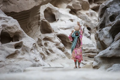 Chahkooh Gorge is located in the northwest of Qeshm Island, near the Chahu Sahrghi village. This geosite represents a significant and unique example of running water erosion and forming a canyon valley. The rapid and powerful water current in torrential and uncommon rains has been the main factor in shaping this gorge. However, water erosion is the second factor to form this gorge and has occurred along a joint and the main fracture. The floors surrounding this gorge are part of the Salakh anticline ridge where the Salt Dome is exposed. Anticline is a type of dome-like fold with a convex-up structure that is formed by internal and lateral earth pressures. Because of lateral pressures and elongation of the anticline layers, joints, fractures, and faults appear at the edge of the anticline. The joints and fractures in Chahkuh Gorge are the weaknesses of the edge, and erosive factors in these points have stronger and more effective performance. The Chahkooh Gorge is one of these primitive fractures that developed gradually by erosive factors. In the vertical direction of the main gorge, another gorge includes a very prominent linear crevice that can be observed along the fracture. One feature of the geological formation of Chahkuh Gorge is water impermeability. This feature leads to water flowing through and fills the fissures and cracks and gradually causes them to be eroded. Generally, the anticlines and their surrounding areas are considered turbulent and unstable regions, which causes the formation of faults and cracks. Due to the mechanical function of water, non-uniform substances, as well as erosion, linear, elliptical, and spherical concave shapes, have been created in the walls of the gorge. Also, due to the movement and rotation of rock fragments by water flow inside the gorge, ditches, bowl-like shapes, potholes, and other erosive forms have been created. The locals have utilized this feature by digging holes in the bottom of the gorge to collect and store rainwater. Due to the drought and the significant value of rainwater in the past, this invention has been highly valuable and effective. Tectonic structures: One of the visible phenomena in the Chahkuh gorge is the function of east-west faults, which are formed perpendicular to the main valley. These faults, which are parallel to each other, have an almost vertical fault mirror with left-slip surfaces and a normal component. The pigeonhole erosion (Tafoni) is a form of dissolution erosion in sandstone layers. In this type of erosion, winds containing saltwater droplets, after evaporation and crystallization of salt crystals, cause the sandstone to be separated into sheets and grains. In this picture, the flat surfaces of the ridges and arches indicate that these surfaces are equally affected by other erosion processes such as rapid water and wind erosions.